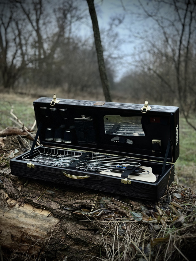 Набір складається із 18 предметів. Все необхідне для приготування різних страв на багатті. Такий набір стане відмінним подарунком для ваших рідних, близьких, друзів або колег по роботі. А додаткова опція "іменне гравіювання" стане "вишнею на торті", яка зробить ваш подарунок ще більш оригінальним і незабутнім.