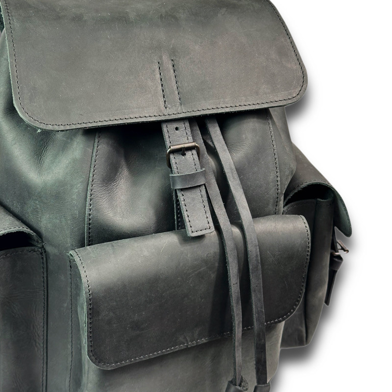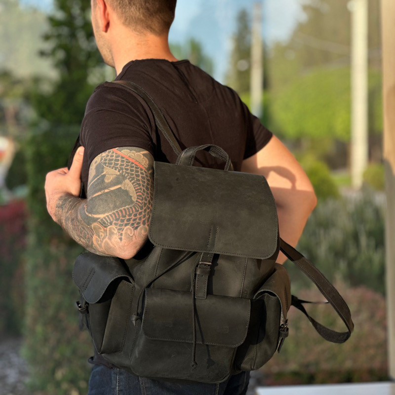 Просторий шкіряний рюкзак, виконаний з високоякісної італійської шкіри Crazy Horse у відтінках (чорний, коричневий, коньяк), ідеально підходить як для повсякденного використання, так і для подорожей або відпочинку.